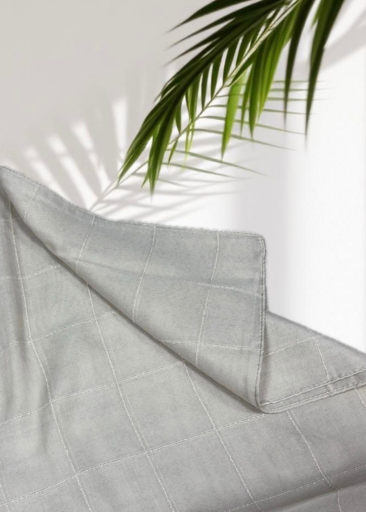 Zarafetin ve sadeliğin buluştuğu bu özel şal,yumuşak dokusuyla hem gündelik hem de özel kombinlere sofistike bir dokunuş katıyor. Kare desenli dikiş yapısı, geometrik sadeliği modern bir estetikle buluştururken, doğal ışık altında oluşan palmiye gölgeleriyle çekilen görseli, ürünün dingin ve rafine karakterini vurguluyor.